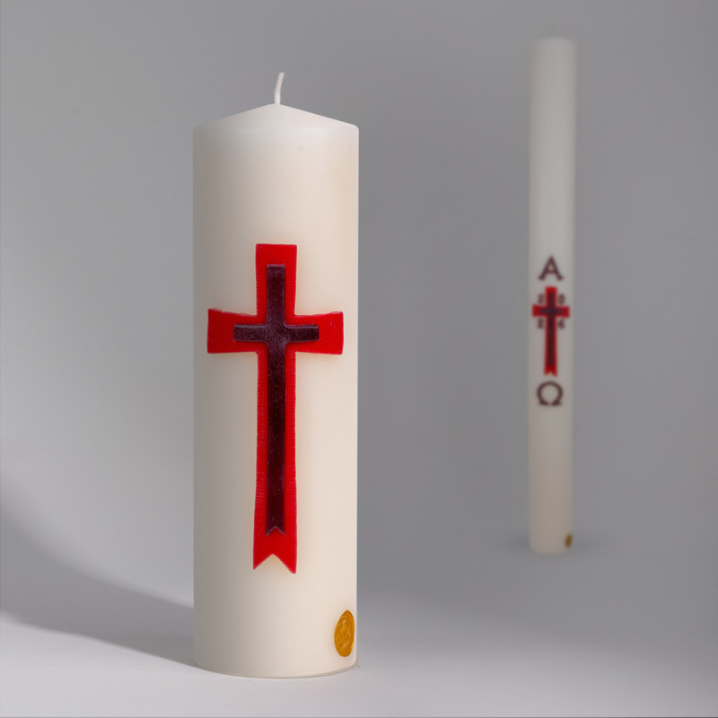 Pour mieux marquer le temps pascal, nous proposons d’assortir les cierges d’autel au cierge pascal.